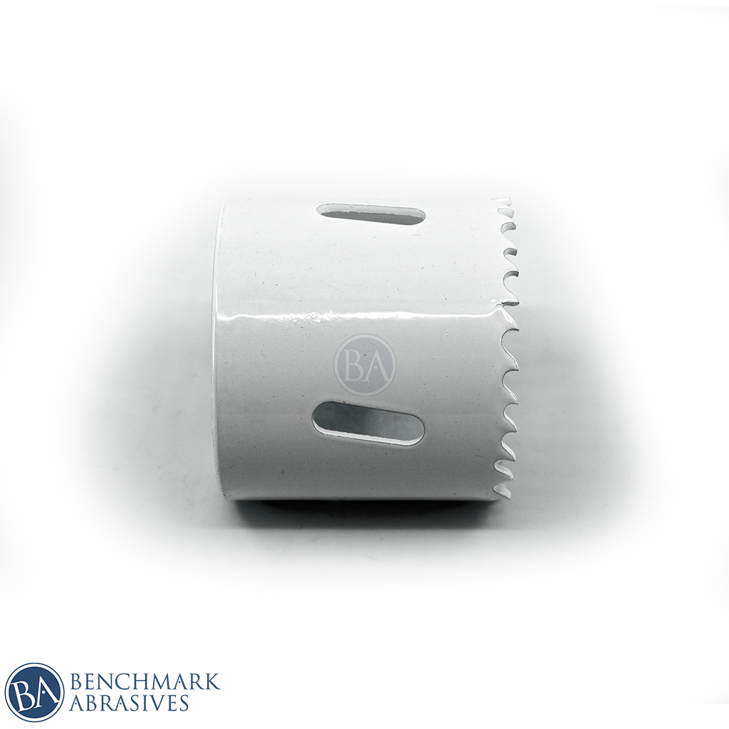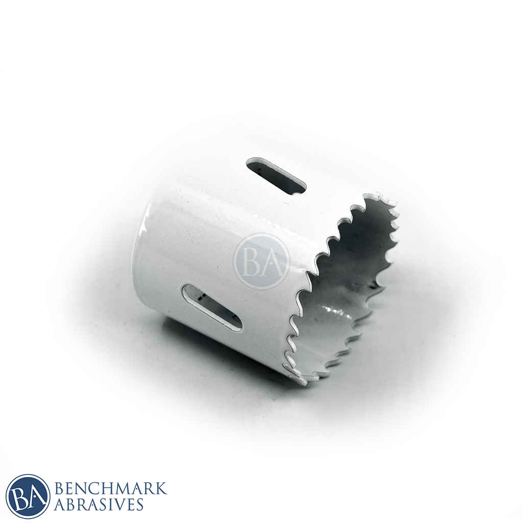 Benchmark Abrasives 1-13/16" Bi-Metal Hole saws are MADE IN USA. Constructed from durable bi-metal for high-performance cutting power, the 4/6 TPI (teeth per inch) and positive rake angle, delivers fast, clean cuts ideal for use on 2” x 4” wood board planks. Side cut outs make removal of debris and plugs a breeze.