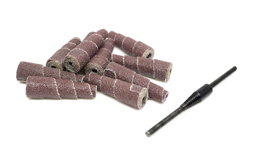 The tapered cartridge roll is an aluminum oxide-coated abrasive, glued into a cone shape that is attached to a mandrel and meant to be used on a drill or hand-guided die grinder. This cone construction offers the user precision grinding in tight areas. These cartridge rolls are ideal for sanding and finishing.
