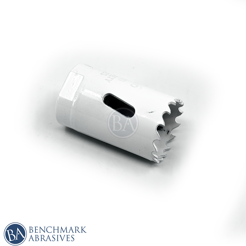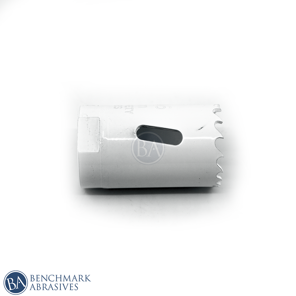 Benchmark Abrasives 1" Bi-Metal Hole saws are MADE IN USA. Constructed from durable bi-metal for high-performance cutting power, the 4/6 TPI (teeth per inch) and positive rake angle, delivers fast, clean cuts ideal for use on 2” x 4” wood board planks. Side cut outs make removal of debris and plugs a breeze.
