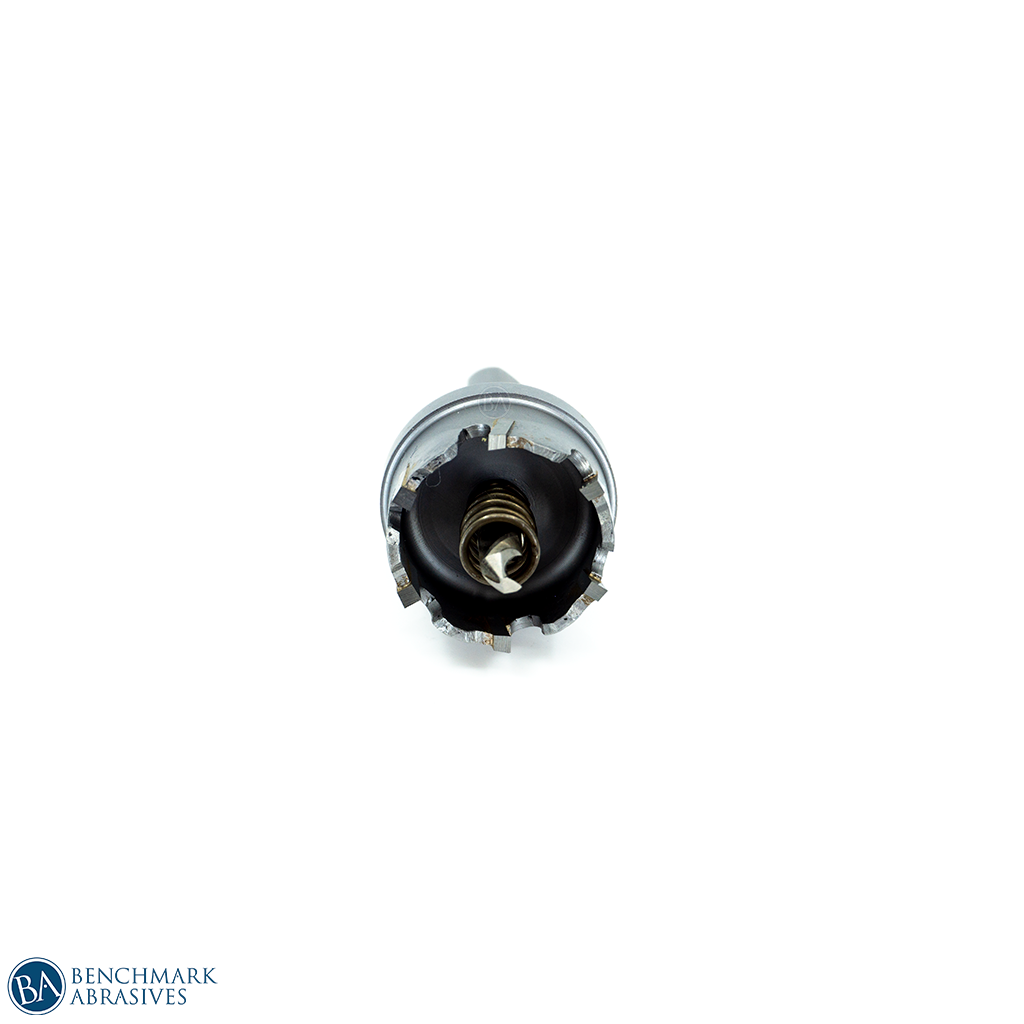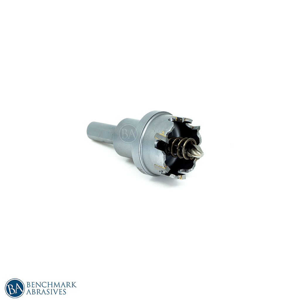 Benchmark Abrasives 1-3/16" Tungsten Carbide Tipped Hole Cutters are ideal for drilling steel plate, stainless steel, iron, aluminum, copper, cast iron, fiberglass, and plastic up to 1 inch thick. It has a tremendous edge-cutting system for fast, bur-free/smooth drilling. This tungsten carbide-tipped hole cutter is a perfect portable tool for the professional electrician, plumber, mechanic to drill large diameter holes in hard materials using an electric drill. Includes hole cutter, hex key, and pilot bit.