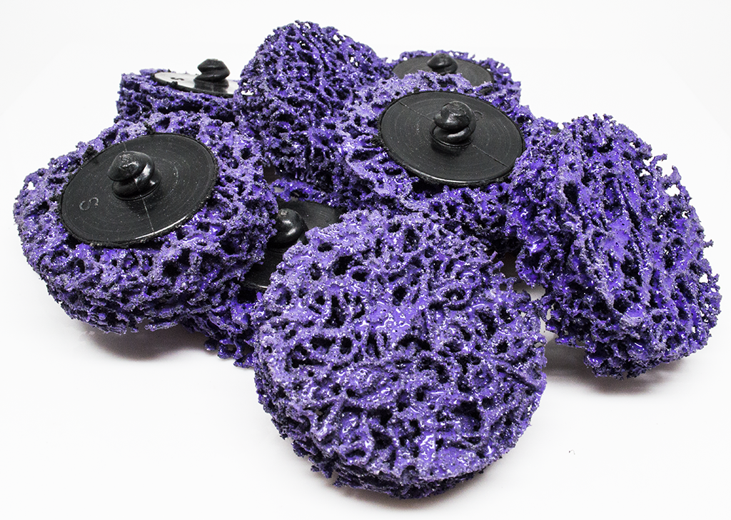 Benchmark Abrasives 2" Premium Quick Change Stripper Discs are made of nylon impregnated with extra course Silicon Carbide abrasive grain, a highly flexible disc alternative to wire brush, hand scrapers, and abrasive discs. The tough open web makes this product non-loading and cool-working, no harm to the workpiece, even works in wet areas. It is also easy to clean with air. Equivalent to the 3M Roloc fastening system.