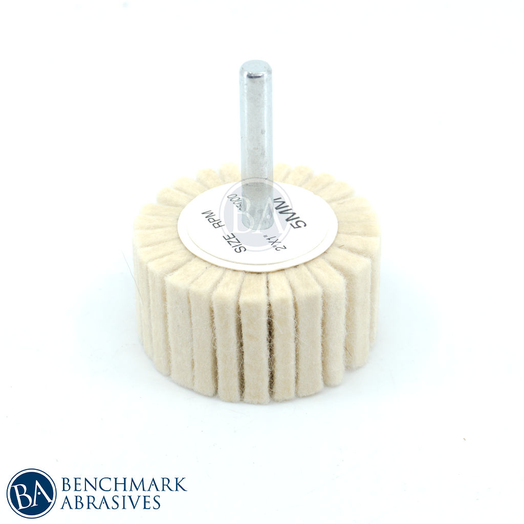 2" x 1" (1/4" shaft) Felt Flap Wheels are a very versatile buffing product made with100% Australian wool. Choose the correct buffing compound or polishing paste and they can get a perfect finish on most materials including ferrous & non-ferrous materials as well as stones, plastics, and glass.