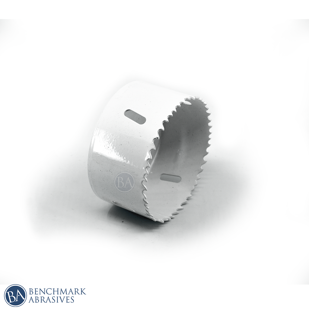 Benchmark Abrasives 3-1/4" Bi-Metal Hole saws are MADE IN USA. Constructed from durable bi-metal for high-performance cutting power, the 4/6 TPI (teeth per inch) and positive rake angle, delivers fast, clean cuts ideal for use on 2” x 4” wood board planks. Side cut outs make removal of debris and plugs a breeze.