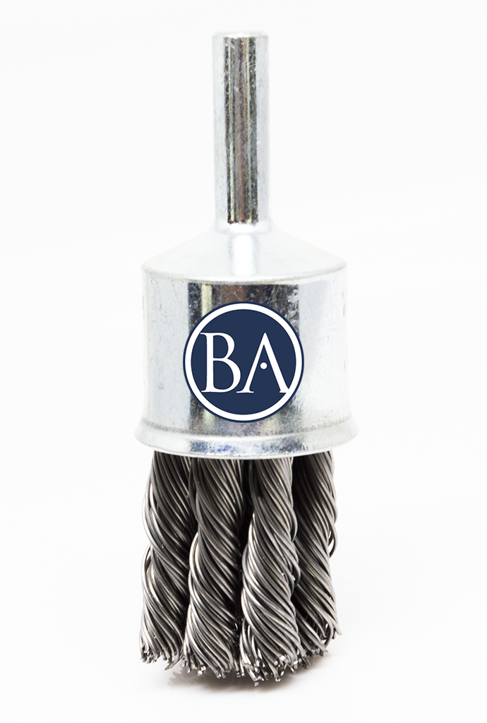 3/4" Knot Wire End Brush for Stainless Steel are best for use on corrosion-resistant or non-ferrous materials. They are also used to clean surfaces and to create a better conductive area for attaching electrical connections. The crimped wire style is suited for medium to heavy duty jobs. This end brush has 1/4" shank for easy use on powered drills and other pneumatic tools.