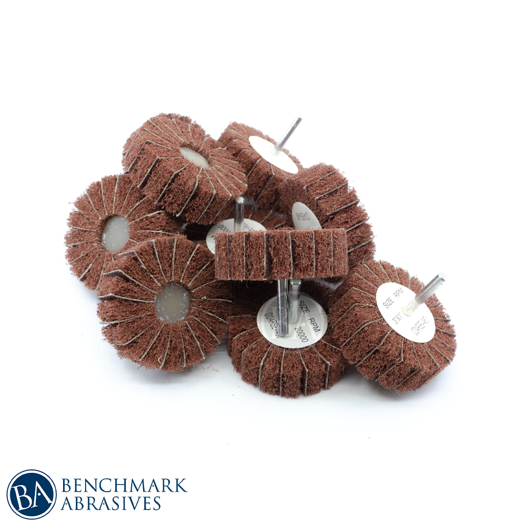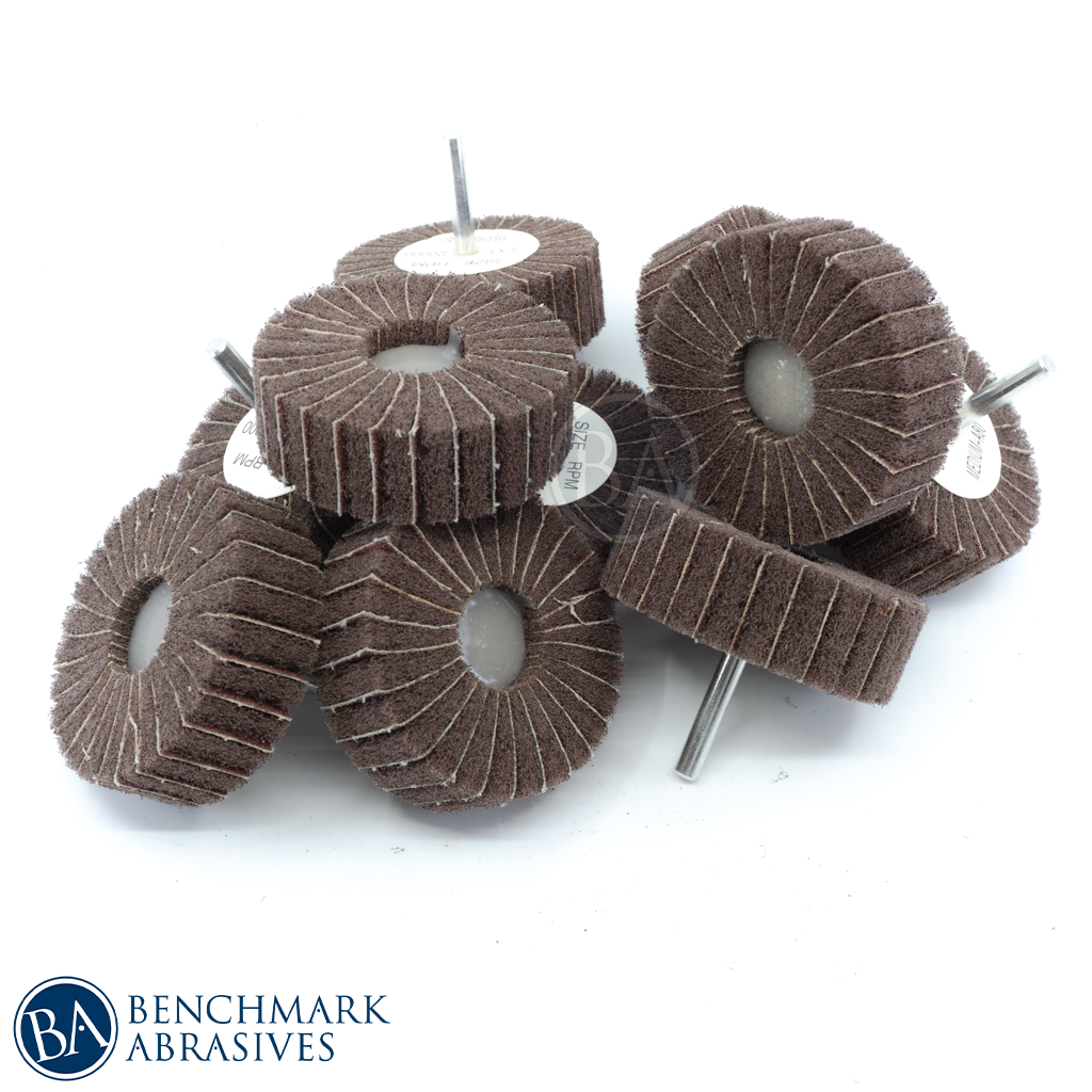 3" x 1" (1/4" shaft) Interleaf Flap Wheels are made with flexible non-woven material impregnated with top quality German abrasive grains and our X-Flexed cotton cloth to combine the best of both worlds; the removal capacity of an AO flap wheel and polishing properties of a surface conditioning flap wheel.
