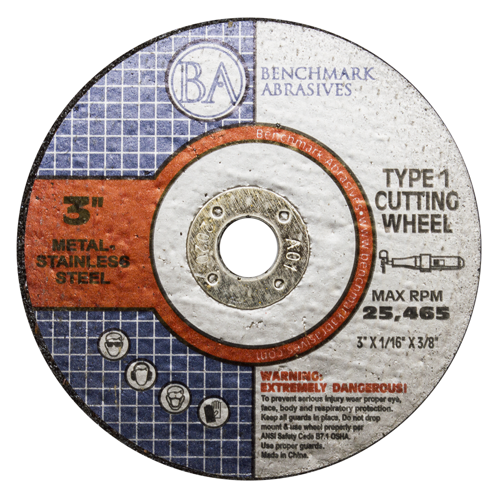3" X 1/8" X 3/8" T1 Premium Thin Cut-off Wheel provides premium performance and increases productivity. This disc is designed for use in angle grinders and is ideal for all types of metal/stainless steel materials. These Cut off Wheels are designed for cutting Fiberglass, Steel, Iron, Plastic, Stainless Steel, and other Ferrous Metals. These wheels are internally reinforced with high tensile strength fiberglass. Highly refined ingredients will not contaminate stainless steel. It offers fast cool cutting that allows the operator to work with minimum pressure and a reduced heat-affected zone during cutting minimizes burr creation.