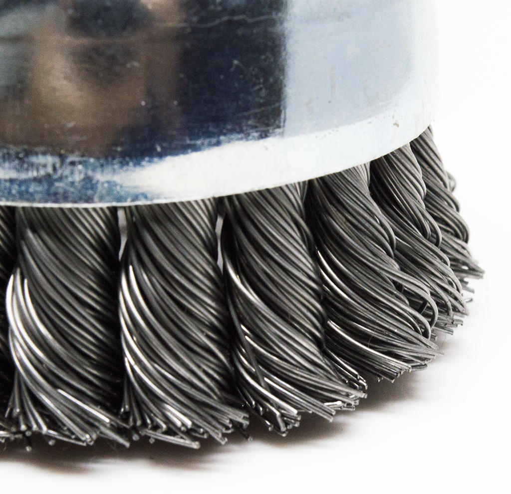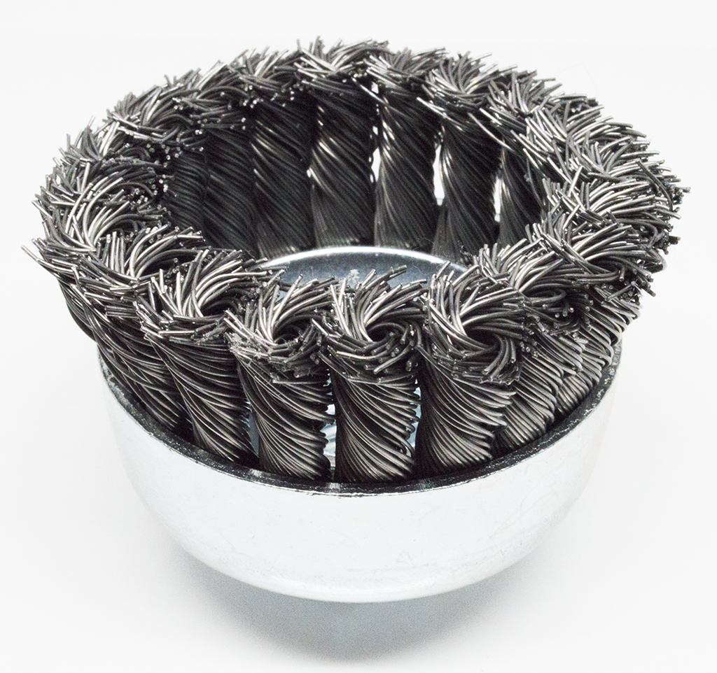 The knotted cup brush is designed for rigorous workpieces. These knotted wire cup brushes are ideal for metal surface preparation, cleaning, removal of weld scale and rust. This cup brush provides flexibility for light removal of rust & paint & general cleaning.