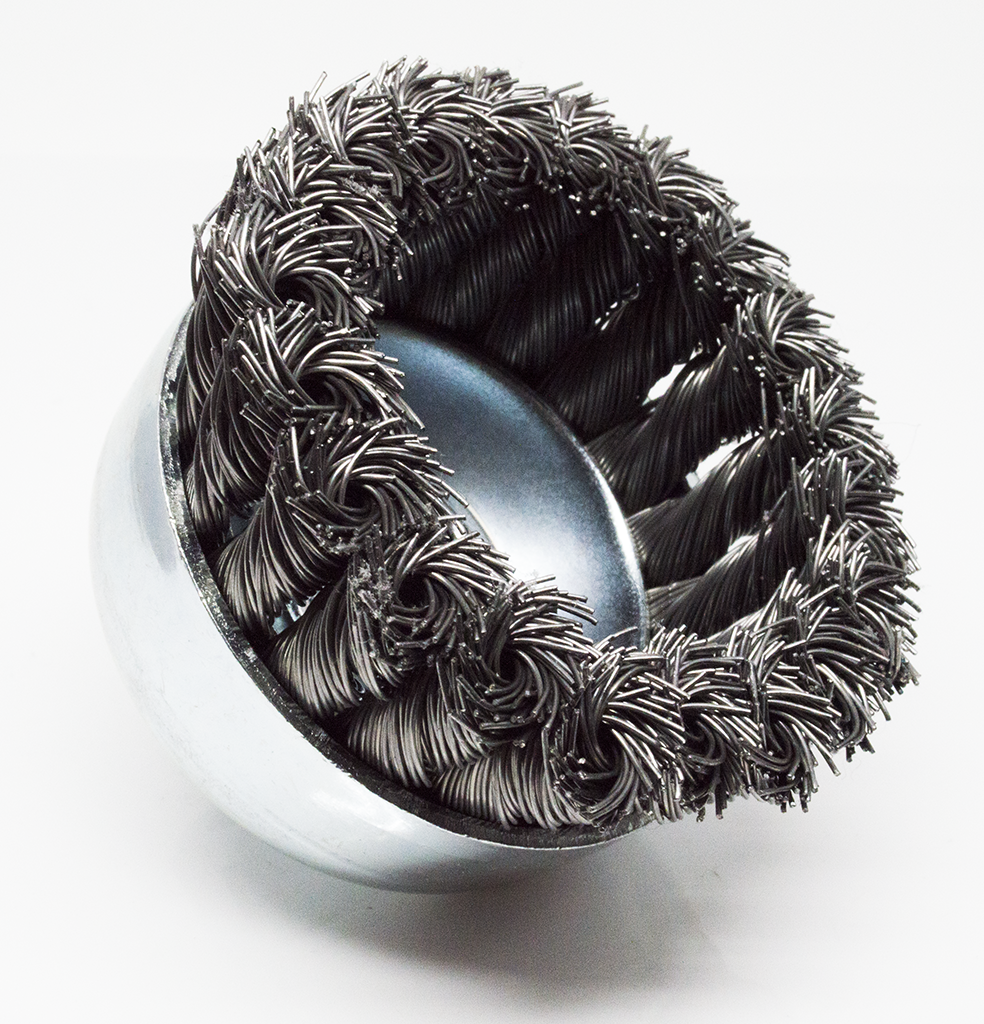 3" x 5/8"-11 Knotted Cup Brush - Carbon Steel | Free Shipping Skip to content