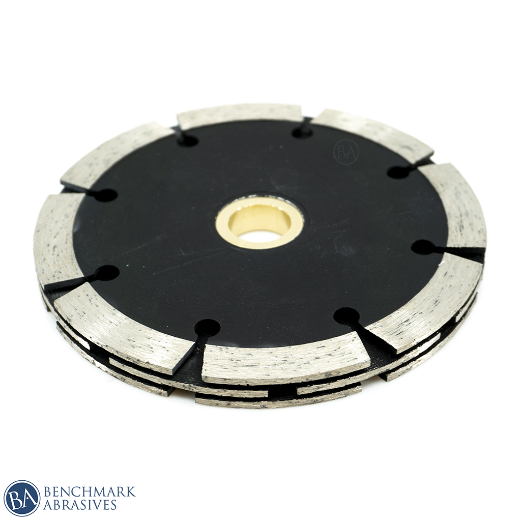The sandwich tuckpointing blades provide quick and consistent grout and mortar removal. This triple sandwich tuck point diamond blade is used for routing and cleaning cracks in concrete. The cracks can then be filled with epoxy.