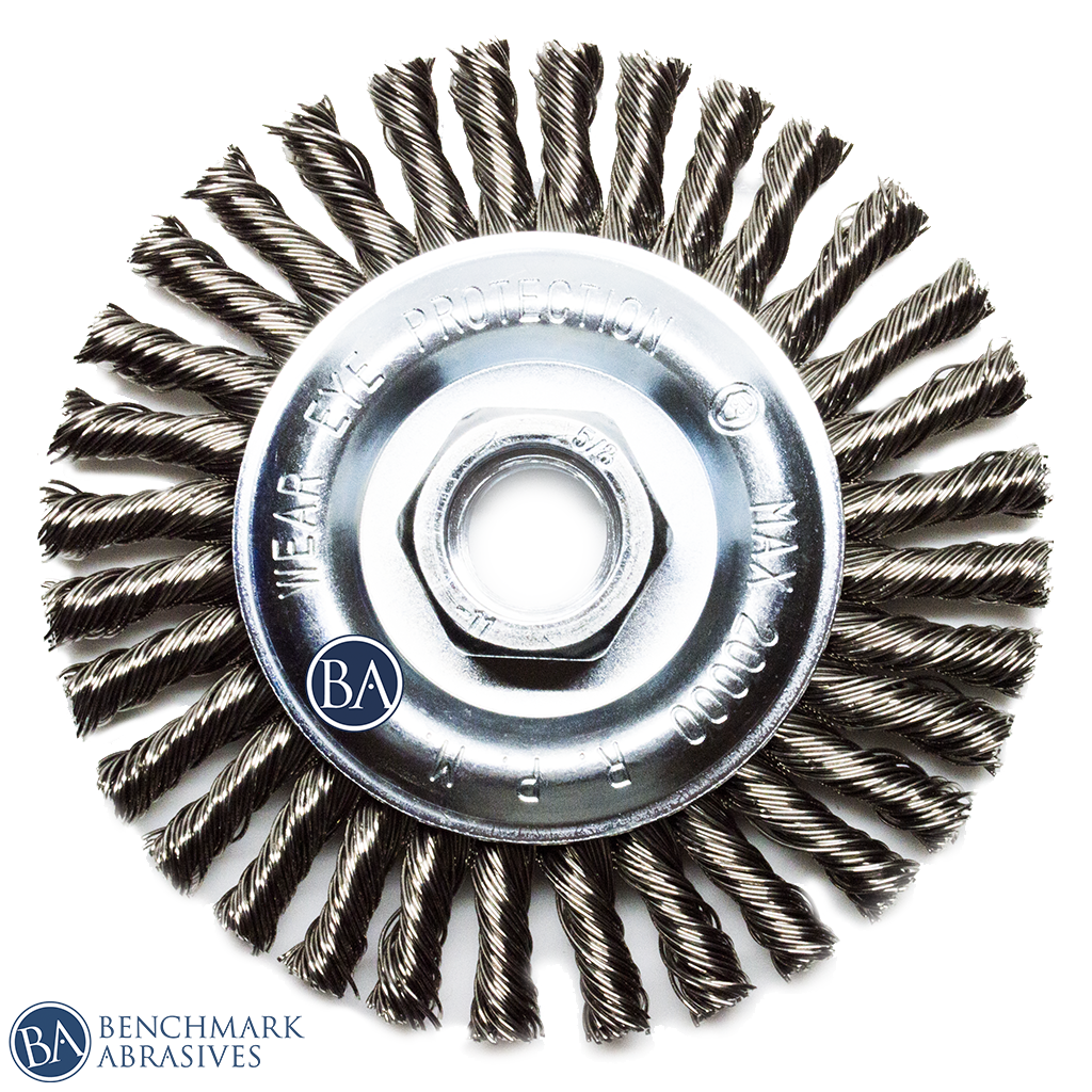 The twist knot style wires make this brush good for heavy-duty cleaning applications. It is used in surface preparation prior to welding and also great for removing weld scale, spatter, and heavy corrosion. It has 5/8"-11 threads. The stringer bead wire wheel is ideal for welding and metal fabrication applications. These wire wheels are perfect for general cleaning, weld cleaning, removal of rubber flash, scale, rust, and pipeline cleaning. It can be used horizontally or vertically.