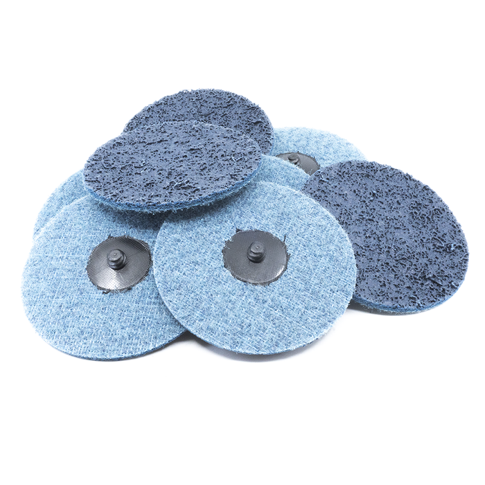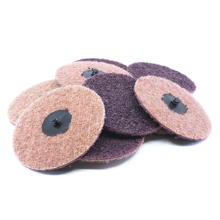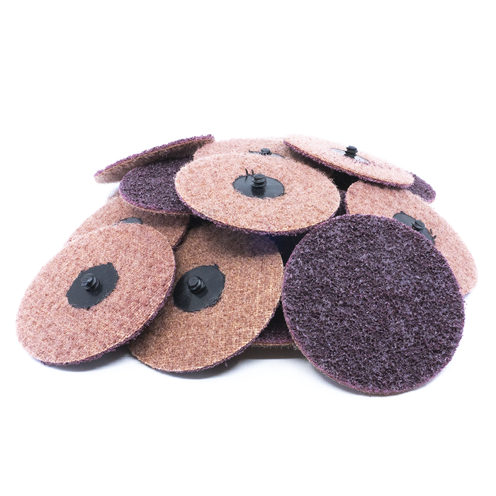 Benchmark Abrasives 4" Surface Conditioning Quick Change Discs combine the effectiveness and versatility of the non-woven abrasive with the convenience of the quick-change roll-on backing. These discs are made with the highest quality non-woven, open nylon webbing, filled with premium abrasive grains (Equivalent to 3M™ Scotch-Brite™). The strong backing uses a Type R fastening system (Equivalent to 3M™ Roloc™ fastening system) for quick and easy attachment and removal. These discs are perfect for cleaning, finishing, and deburring contoured or irregular surfaces.