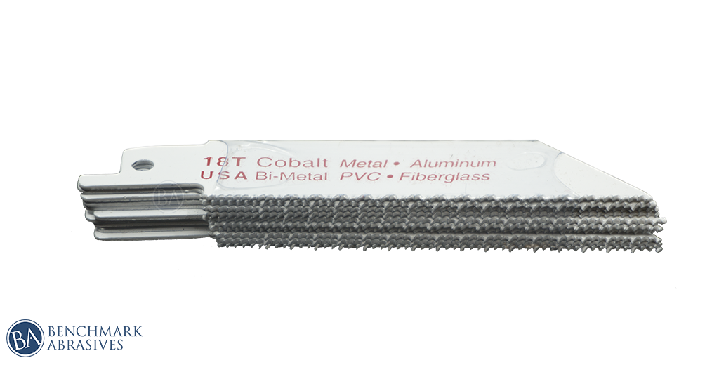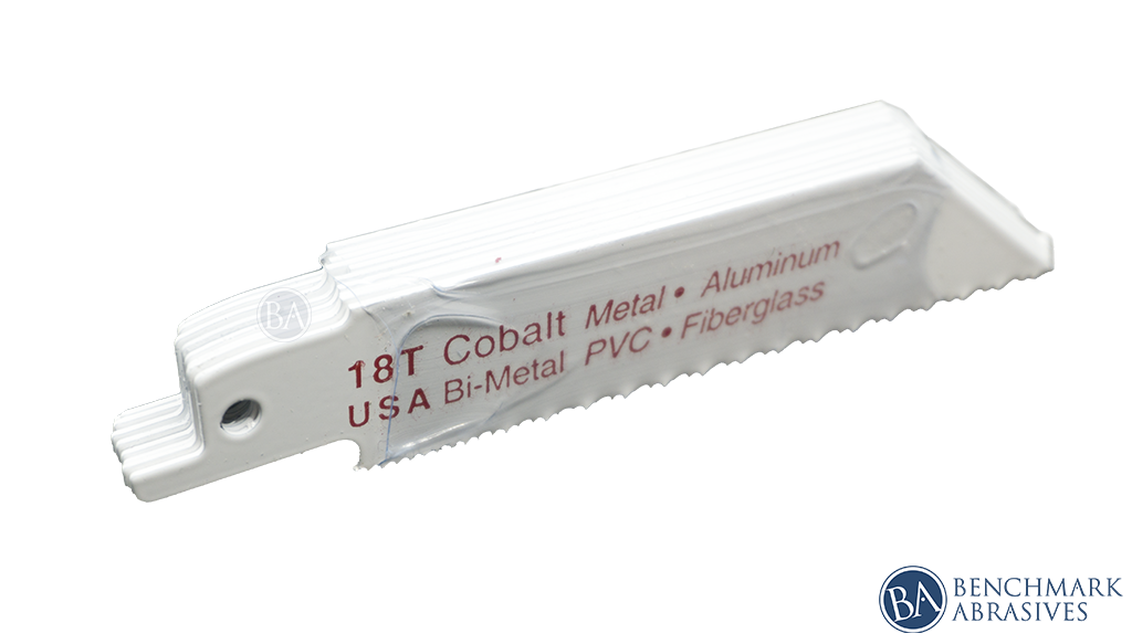 Benchmark Abrasives 4" x .035" x 18T Bi-Metal Reciprocating Blades are MADE IN USA. Constructed from durable bi-metal for high-performance cutting power, this eighteen tooth (18T) heavy-duty reciprocating blade delivers fast, clean cuts ideal for use on wood, plastic, metal, and nail embedded materials.
