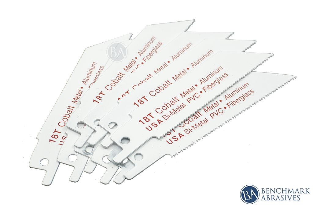 Benchmark Abrasives 4" x .035" x 18T Bi-Metal Reciprocating Blades are MADE IN USA.  Constructed from durable bi-metal for high-performance cutting power, this eighteen tooth (18T) heavy-duty reciprocating blade delivers fast, clean cuts ideal for use on wood, plastic, metal, and nail embedded materials.