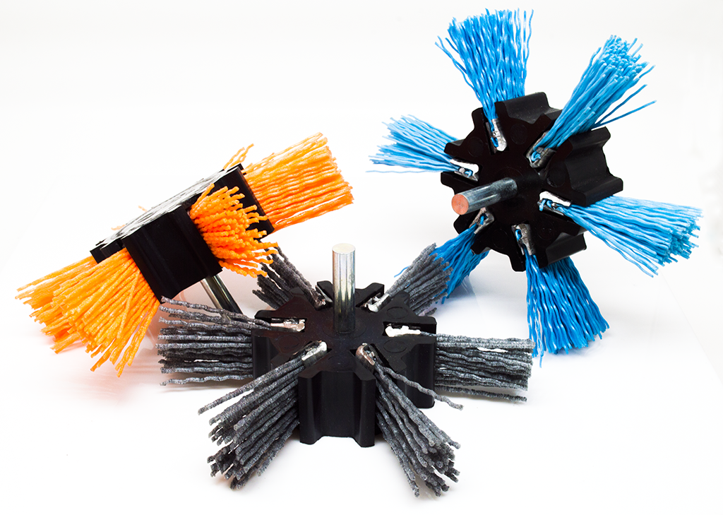 4" x 1/4" Mandrel - Mounted Nylon Flap Wheels are conveniently color coded (Gray/Orange/Blue).