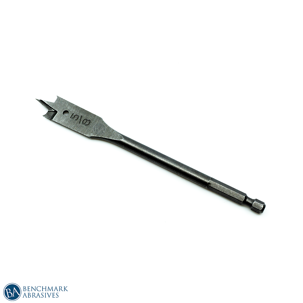 Benchmark Abrasives 5/8" x 6" spade bits are specifically engineered for woodworkers, fabricators, and DIY enthusiasts. They are constructed from heat-treated high-speed steel, precision ground out of a solid piece for accurate, precise holes in wood applications.