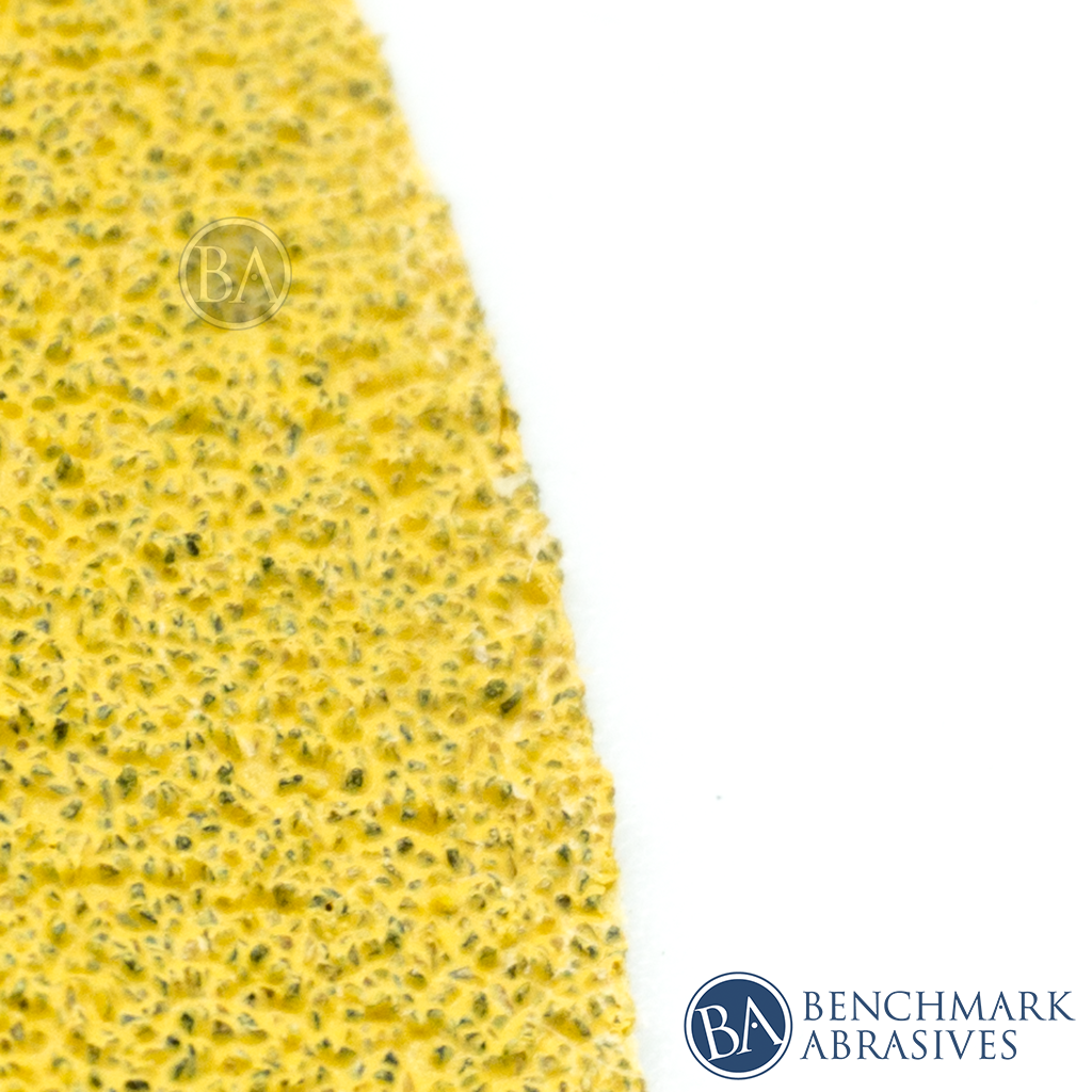 Benchmark Abrasives 5" Gold A/O Five (5) Hole Hook & Loop Discs have a backing made of a material similar to Velcro. It has the loopside of the hook and loop attach to the hook side of a backing pad. The backing pad attaches to the machine like a random orbital sander or disc sander. This makes it very simple to change the sandpaper. These discs are made with premium Gold Aluminum Oxide grains. The hook and loop sandpaper are ideal for sanding wood, metal, and plastics. This sandpaper disc features a clog-reducing net design coated in premium aluminum oxide grit for fast material removal while reducing material build-up.