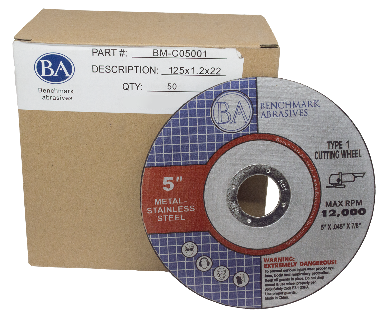 5" X .045 X 7/8" T1 Premium Thin Cut-off Wheel provides premium performance and increases productivity. This disc is designed for use in angle grinders and is ideal for all types of metal/stainless steel materials. These Cut off Wheels are designed for cutting Fiberglass, Steel, Iron, Plastic, Stainless Steel, and other Ferrous Metals. These wheels are internally reinforced with high tensile strength fiberglass. Highly refined ingredients will not contaminate stainless steel. It offers fast cool cutting that allows the operator to work with minimum pressure and a reduced heat-affected zone during cutting minimizes burr creation.