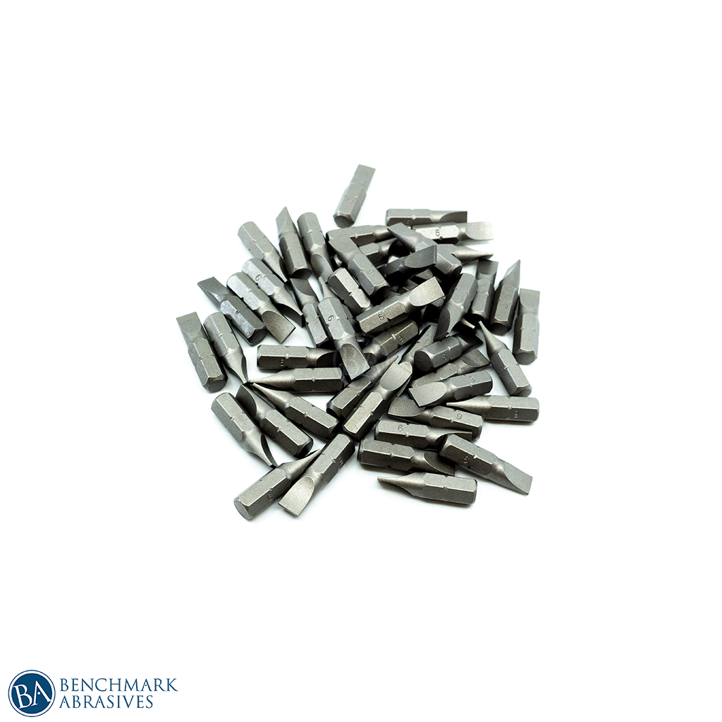 Benchmark Abrasives 6mm x 1" Slotted Insert Bits are CNC machine ground out of heat-treated S2 Shock resistant tool steel, which will withstand extremely high torque output and provide maximum durability. The bits are precision-machined tips for an ideal fit in screw head recesses.