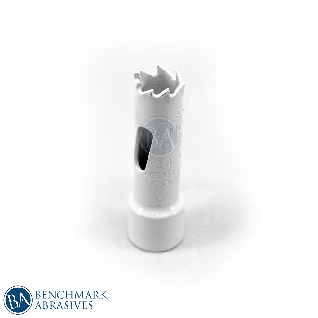 Benchmark Abrasives 9/16" Bi-Metal Hole saws are MADE IN USA. Constructed from durable bi-metal for high-performance cutting power, the 4/6 TPI (teeth per inch) and positive rake angle, delivers fast, clean cuts ideal for use on 2” x 4” wood board planks. Side cut outs make removal of debris and plugs a breeze.