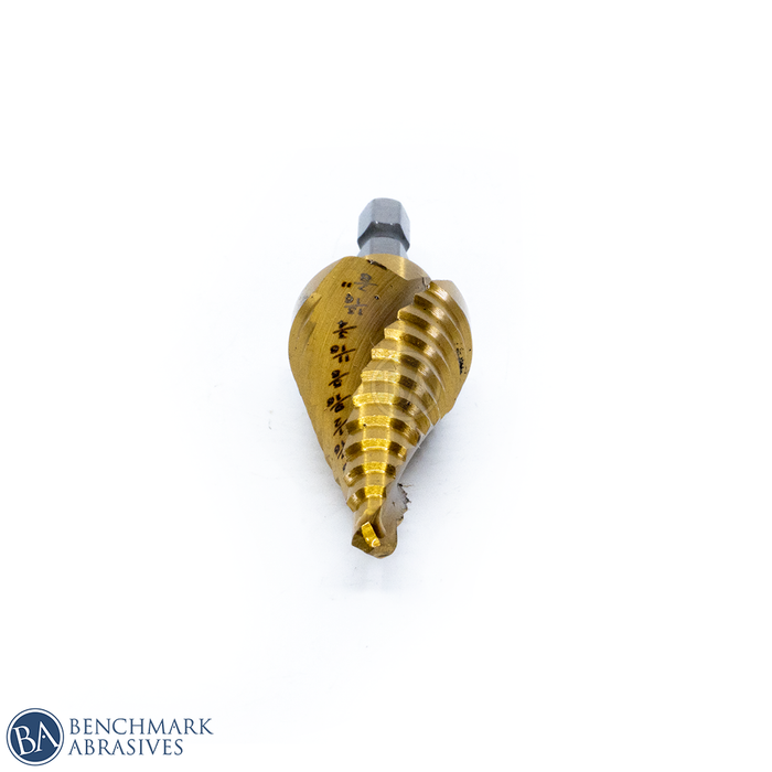 Benchmark Abrasives Economy TiN Coated Step Drill Bit 3/16"-7/8" (12 Steps) are ideal for making burr-free holes in aluminum, wood, copper, plastic, and sheet metal. The Titanium Nitride coated HSS Step Drill Bits are suitable for home light maintenance work and feature a spiral double flute design that provides longer life and better chip removal and a self-centering split point to prevent wobbling. These drill bits are optimized for impact driver usage.