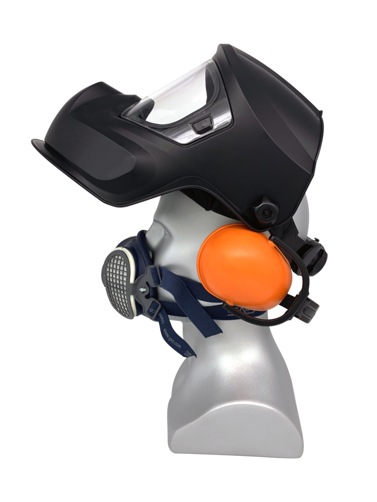 You asked for new and exciting products...well here we are. Some call it a mask, some call it a helmet. We call it our Grinding Hood and it is amazing! Grinding mask face protection with room for cans and half mask. Lens certifications - ANSI CSS Z87+, CSS 1 B CE and CSA Z94.3
