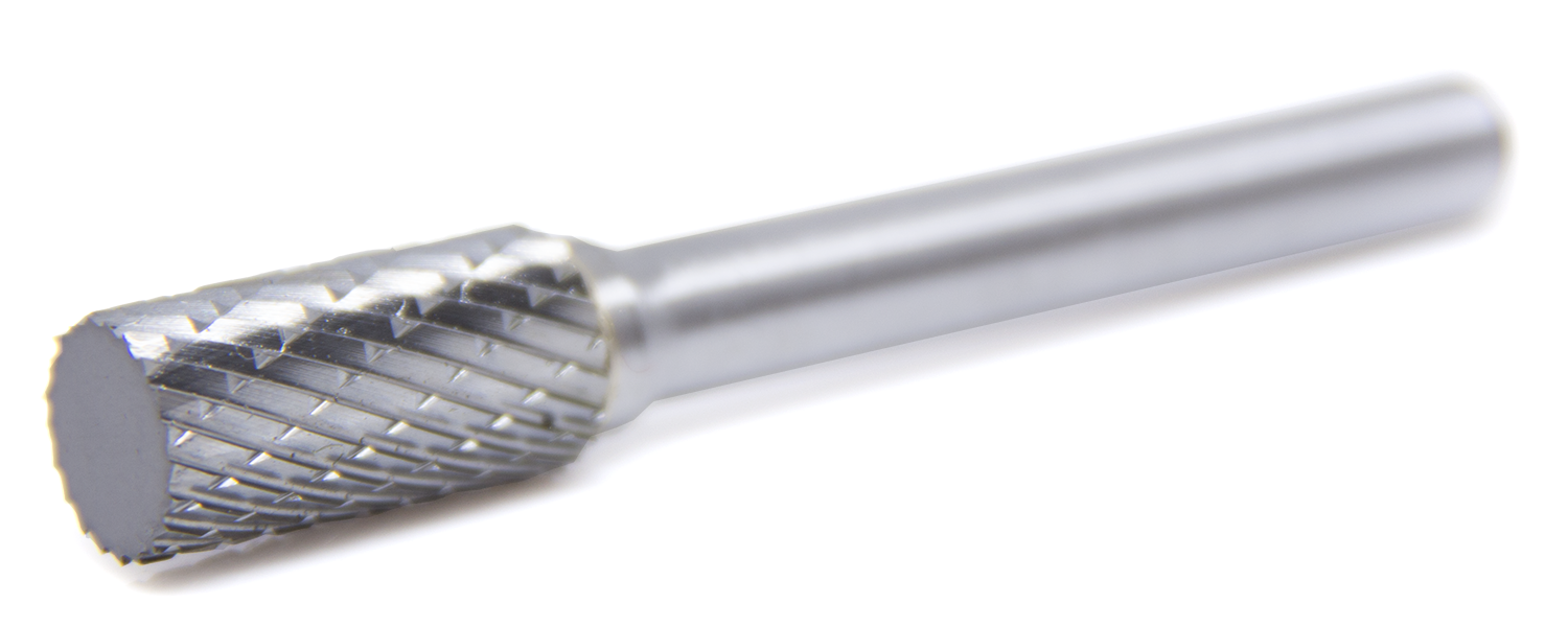 SA-3 cylinder shape burrs are great for interior contour work and deburring. Due to the extreme hardness of this tungsten carbide, it can be used on much more demanding jobs than HSS (High-Speed Steel). These carbide burrs are made of tungsten carbide burr die grinder bits and will start to soften at higher temperatures, so carbide is always the best choice for long-term performance.