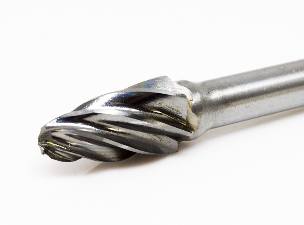 SF-3NF tree shape burrs (also called Rounded Tree Shape) are great for interior contour work and rounded edge processing in small places. Due to the extreme hardness of this tungsten carbide, it can be used on much more demanding jobs than HSS (High-Speed Steel). These carbide burrs are made of tungsten carbide burr die grinder bits and will start to soften at higher temperatures, so carbide is always the best choice for long-term performance.